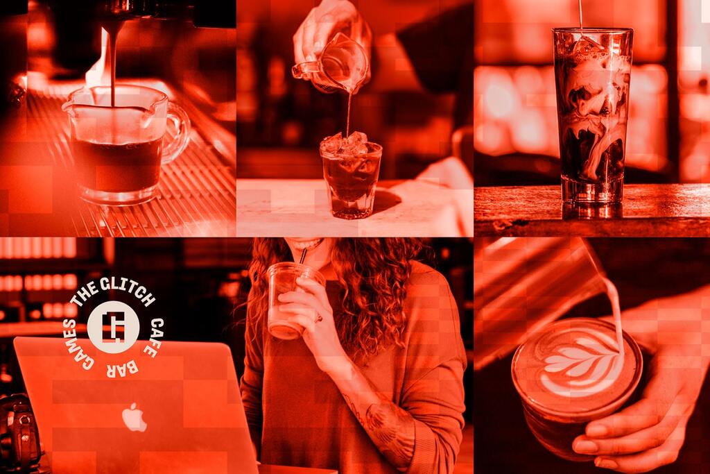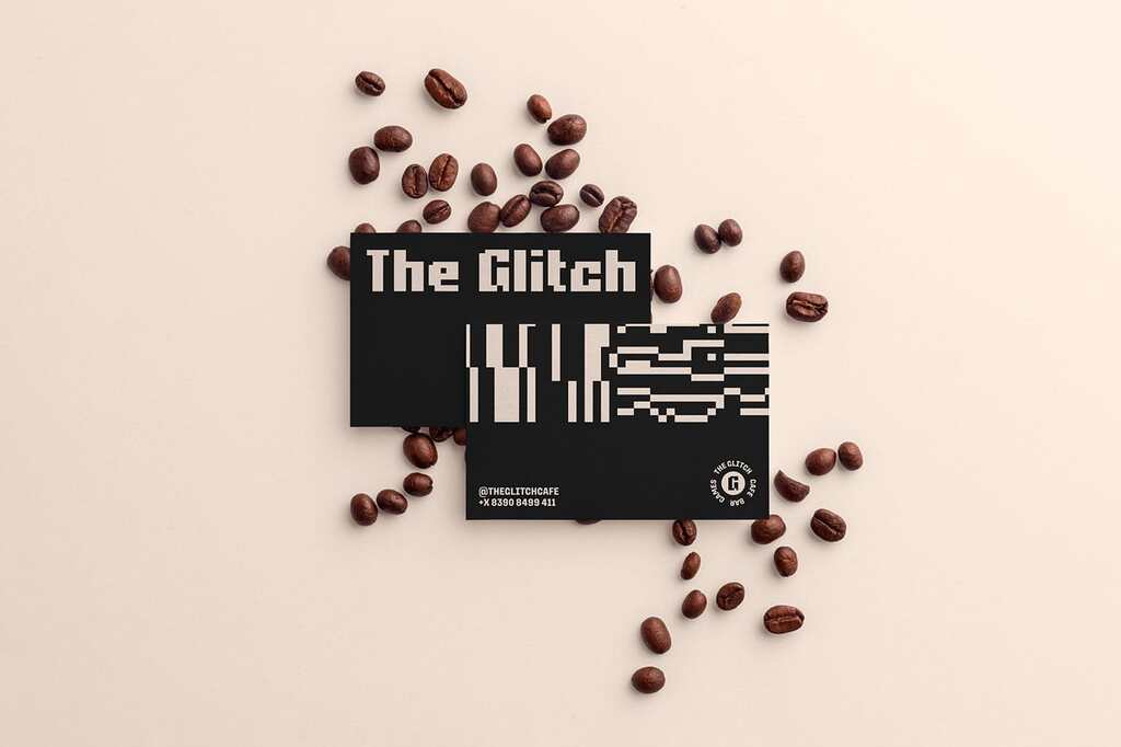 Identité visuelle de The Glitch : café et pixels