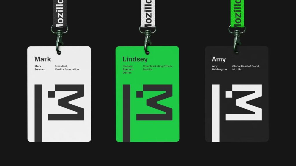 Outre des changements typographiques, cette refonte de l’identité visuelle Mozilla introduit un nouveau logo. Ce dernier prend la forme d’un « M » que l’on a fait pivoter à 90 degrés pour former un motif de drapeau. Faut-il y voir la volonté d’être un porte-drapeau d’un Internet plus ouvert et plus accessible ?