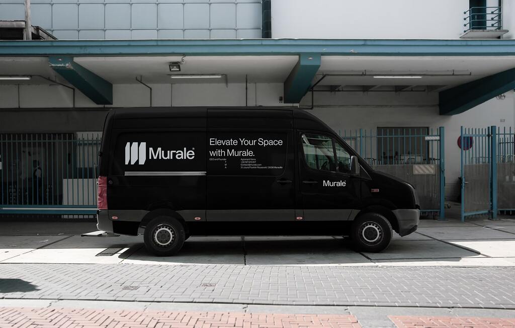 Les autres supports de communication sont à l’avenant garantissant ainsi une réelle cohérence à cette nouvelle identité visuelle Murale. Chaque élément partage en effet une certaine idée du minimalisme et du raffinement. Les designs des cartes de visite, des véhicules et autres affiches viennent donc faire écho au logo que nous évoquions plus avant. Tout comme les couleurs utilisées qui oscillent entre des teintes grises, noires et blanches. Cette colorimétrie participe activement à la cohérence de cette identité visuelle Murale et renforce encore davantage sa dimension discrète et élégance.