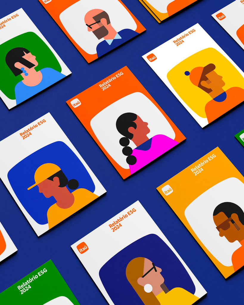 La palette de couleur est également concernée par cette refonte de l’identité visuelle d’Itau. L’ancienne palette bleue et jaune qui évoquait Ikéa cède désormais la place à un orange chaud et rayonnant qui rappelle l’identité de l’entreprise française Orange ! Heureusement, une palette secondaire plus large incorporant les couleurs brésiliennes (jaune, bleu, vert et rose) vient casser ce trop plein d’orange. Cependant, cela reste une palette secondaire et elle ne peut donc se substituer totalement à la couleur principale.